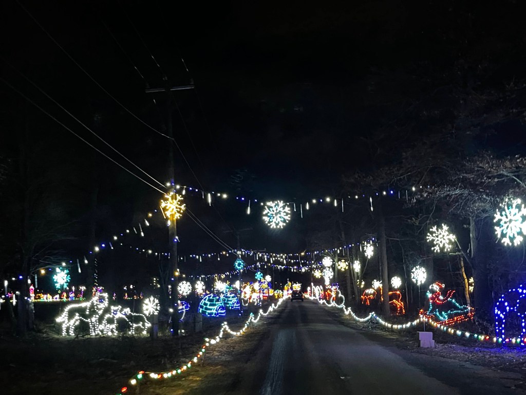 Next day, what to do with the kids. For about a week before we left, I researched what was in the area for kids. We ended up at the Children’s Museum in Hartford and it was really great! A big place with so much interactive stuff for the kids to do. We next went to the Dinosaur State Park which the kids also enjoyed…They put a museum on top of fossilized dino prints which was pretty cool. At night a festive drive through Christmas display, very cool for my kids, especially my son who loves light displays.