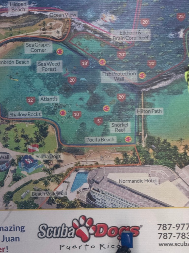The final stop was snorkeling at Escambron Marine Park (booked on Viator). This one-hour trip off the beach was a lot of fun – we got to see a lot of tropical fish and several sea turtles. The guide was super nice and very knowledgeable; he also made sure my daughter was comfortable and felt safe.