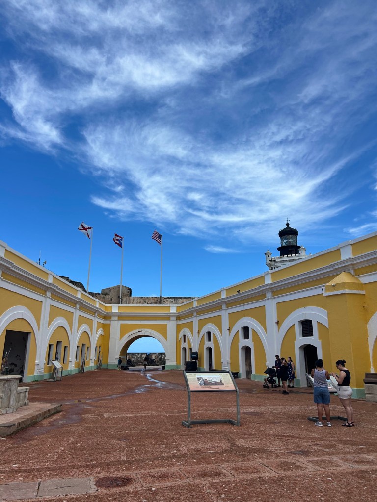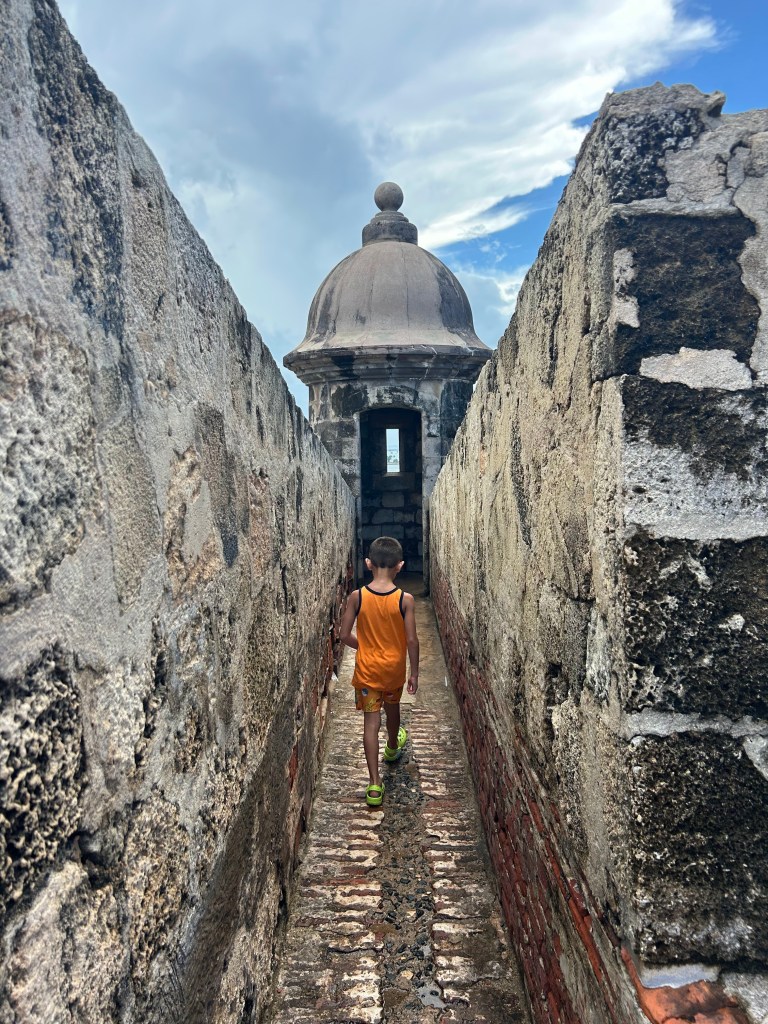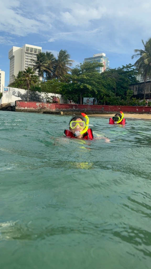 Day 3: Our final full day in PR included some sightseeing and snorkeling. First heading into San Juan, we walked around the cobblestone streets taking in the colorful buildings and art galleries. We found our way over to Pigeon Park, a small park where there are pigeons literally everywhere, and they don’t fly away! After that, we visited El Morro, the fort, and got a nice history lesson…It is inexpensive ($10 for adults/kids free) and is a really cool place to learn about the history of the island.