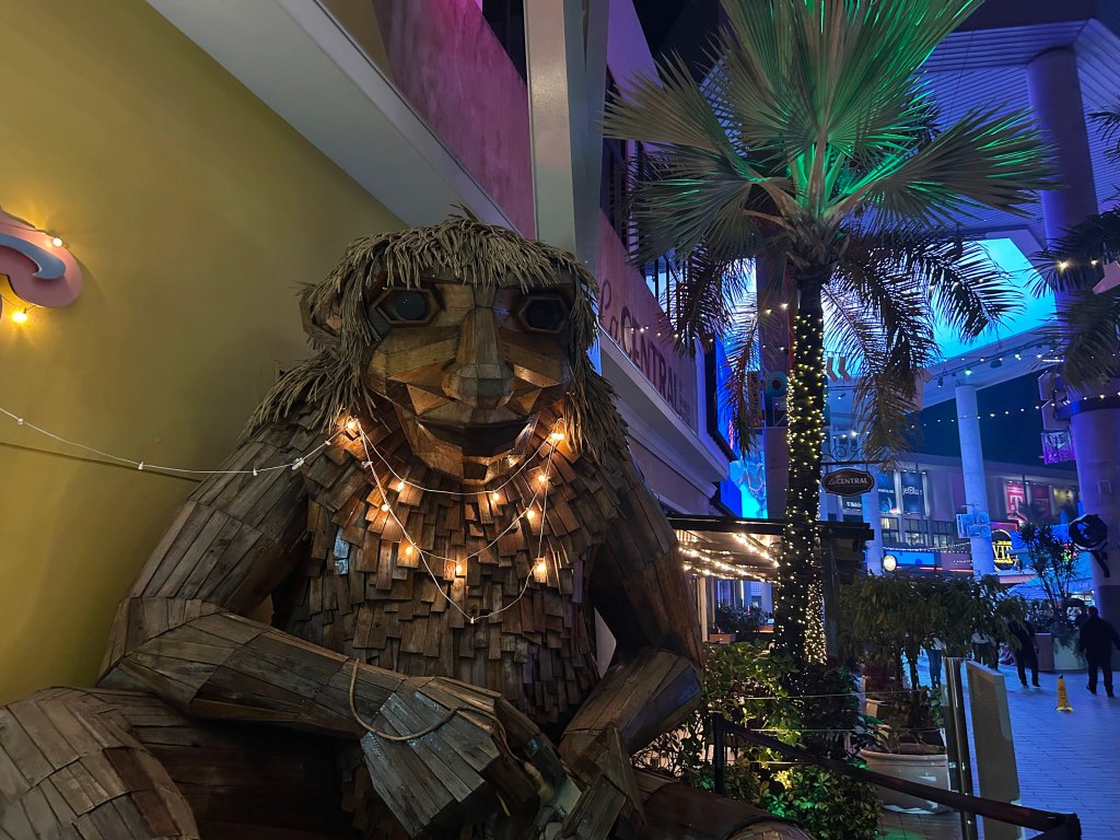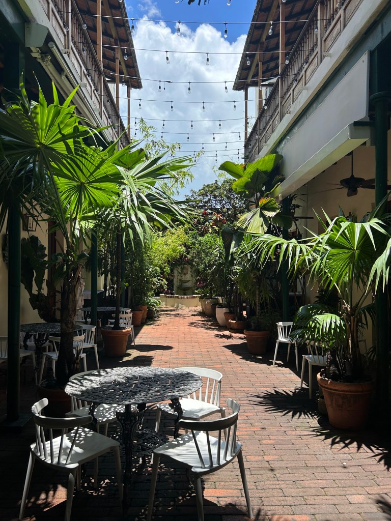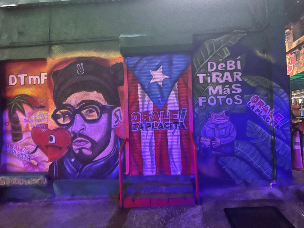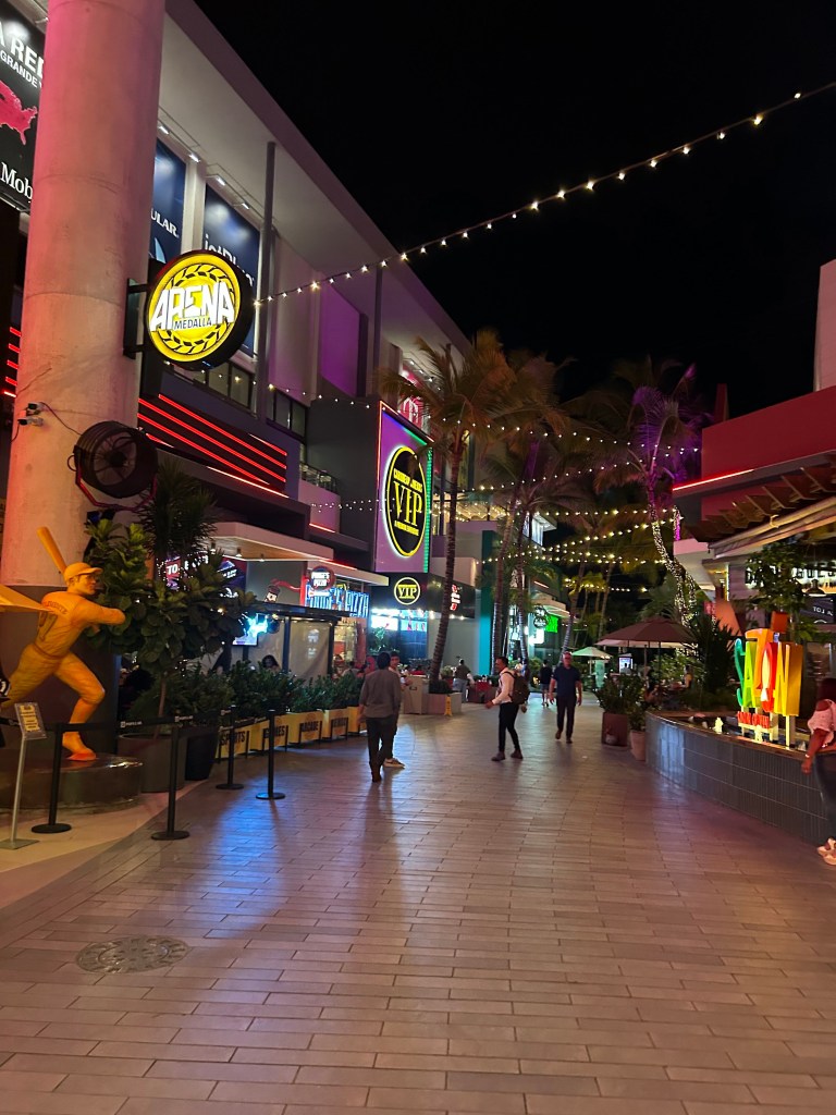 Nighttime activities took us into San Juan for food and nightlife. First stop, “La Placita,” a kind-of party area with music and restaurants everywhere. We ate at Jacinta Cuisine (recommended by the bar tender at the hotel) and the food was delicious. Afterwards, we left the area (they recommend not to be in the area with kids after 9, it is more a 21 and over crowd) and headed over to Distrito T-Mobile. This area, near the convention center, was a cool space with restaurants, dining, live music, etc. It was indoors but had a space in the middle with fake grass, Adirondack chairs and games for the kids…we got some good ice cream there to top the night off.